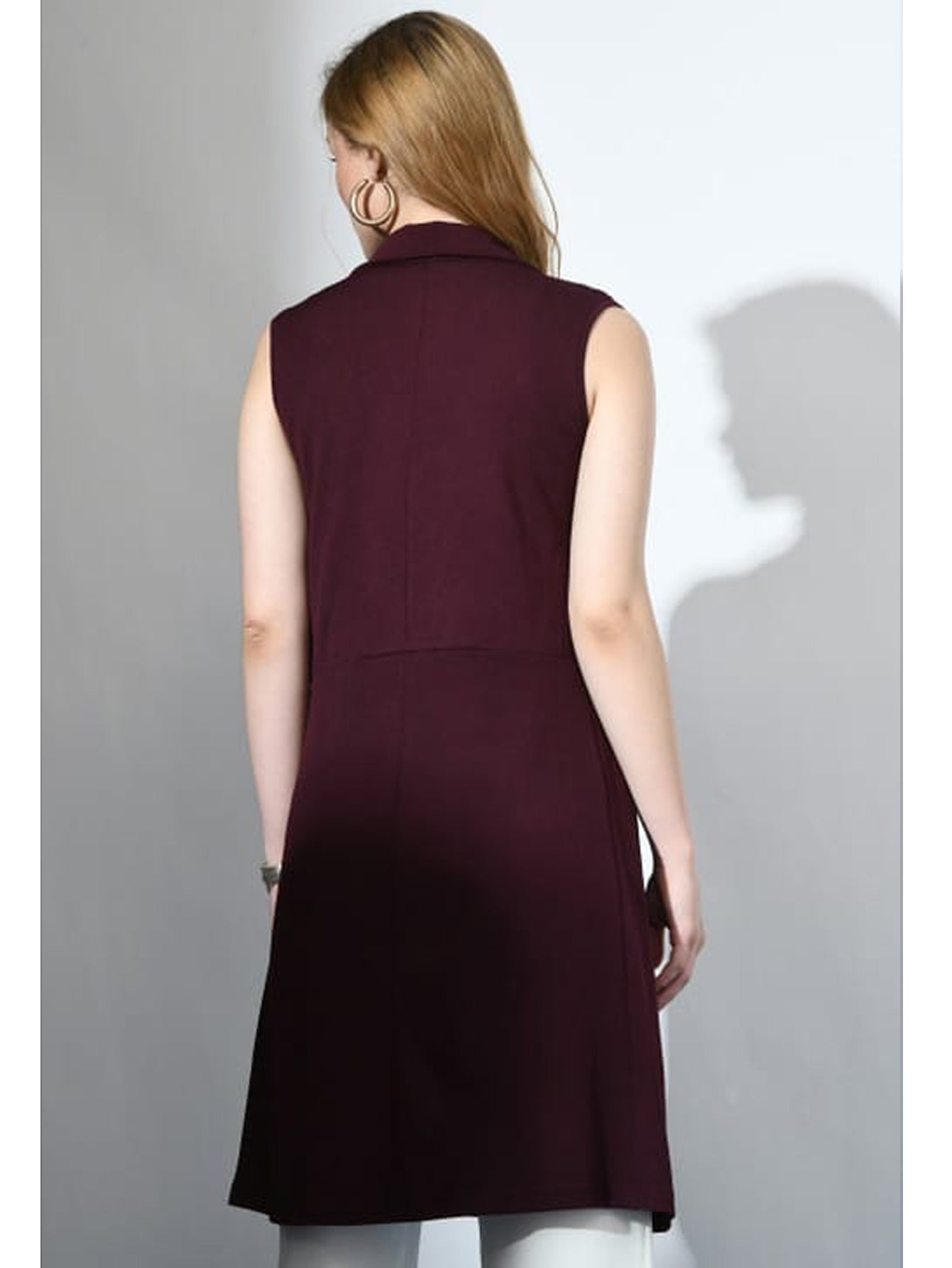 Ladies Maroon Sleeveless Trench coat